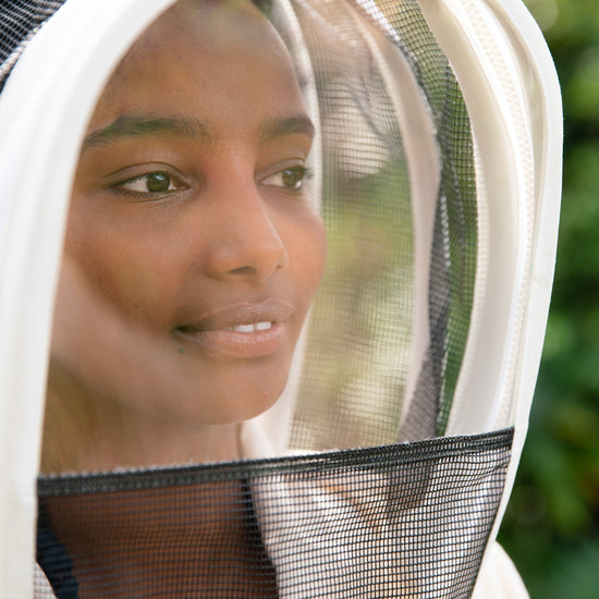 A new type of bee suit visor, the Clear View Hood features clear PVC for viewing and mesh on the bottom third to optimise ventilation, keeping the beekeeper cool while having amazingly clear vision.