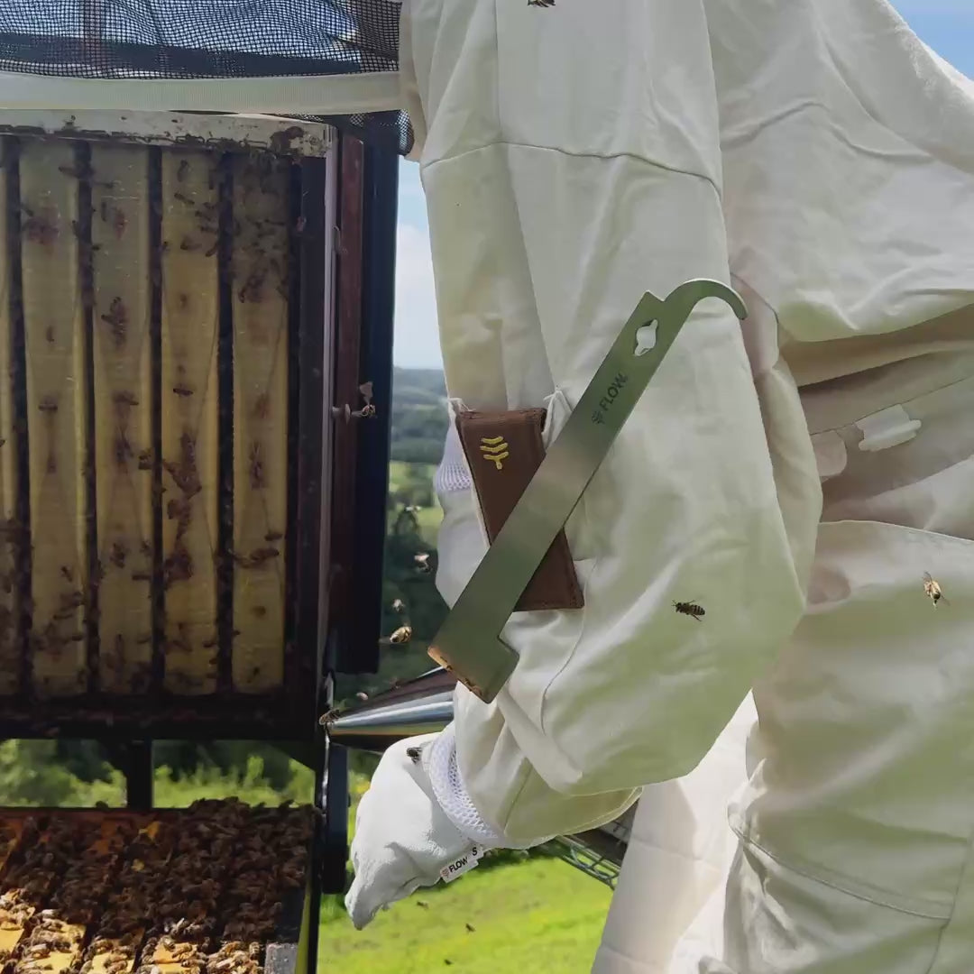 A must-have for every beekeeper's kit, the Flow J-hive Tool is made from strong high-quality stainless steel and is perfect for gently lifting brood frames, separating boxes, scraping propolis, or cleaning up burr comb. Lightweight, simple to use, and designed to fit into the pockets of our beekeeper's suit and mesh jacket.